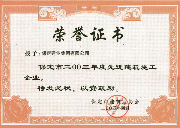03年度省先進(jìn)建筑施工企業(yè)證書