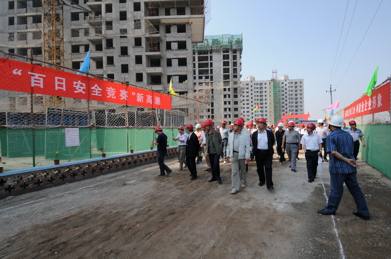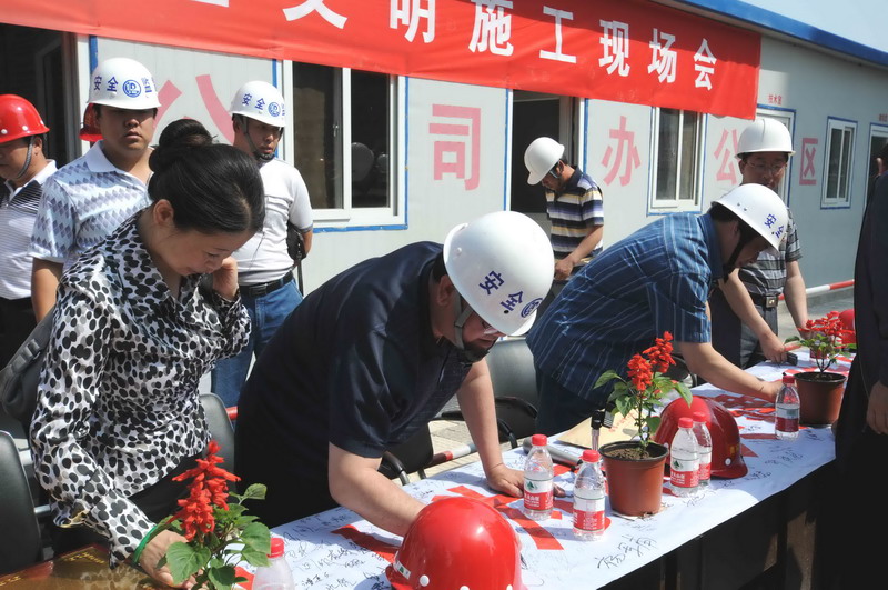 2010年6月4日,張家口住建局在我集團(tuán)六公司承建的張家口親河苑小區(qū)項(xiàng)目部召開(kāi)了建筑施工安全文明施工現(xiàn)場(chǎng)會(huì),張家口市住建局局長(zhǎng)李義、安監(jiān)站站長(zhǎng)張芝祥及各區(qū)縣住建局、安監(jiān)站負(fù)責(zé)人,施工、監(jiān)理單位負(fù)責(zé)人共72個(gè)單位220余人出席了會(huì)議,并在我集團(tuán)安全百日賽的宣傳條幅上了簽字。